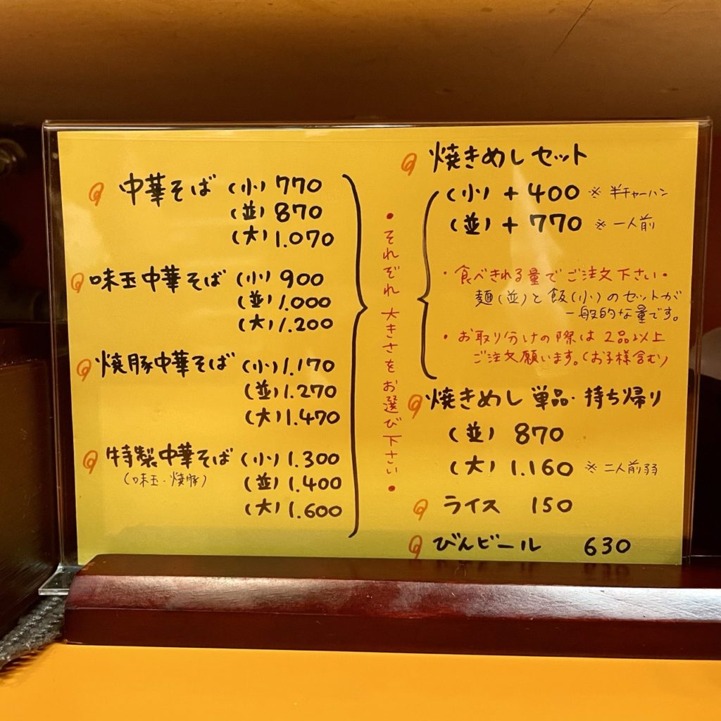 以前は焼きめしセットの大もありましたが、現在は単品注文のみとなります。