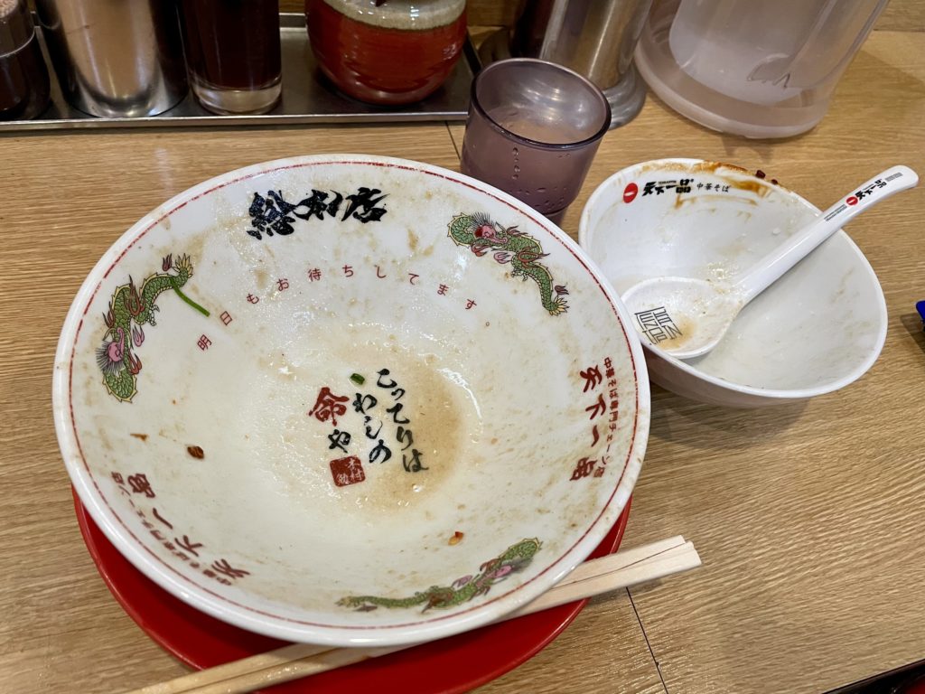 サイドメニューも豊富な天一ですが、今日は肉でめっちゃ米食うたろうということで大ライスを頼んでいます。