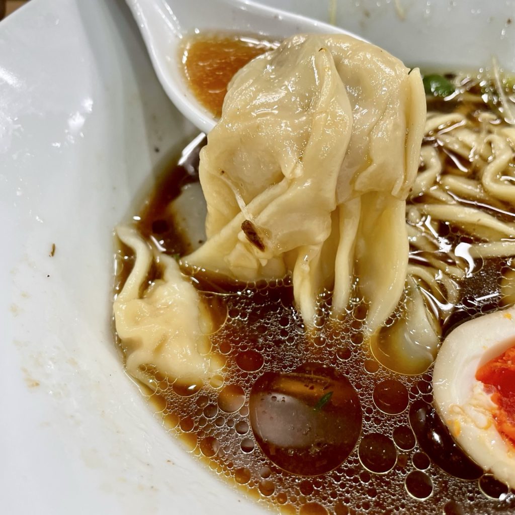 肉ワンタンの方は味が濃くて良い!皮もモッチリつるりで食べごたえありましたね。