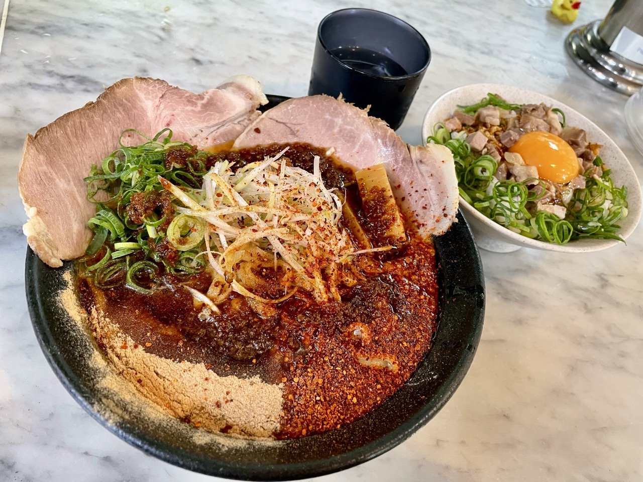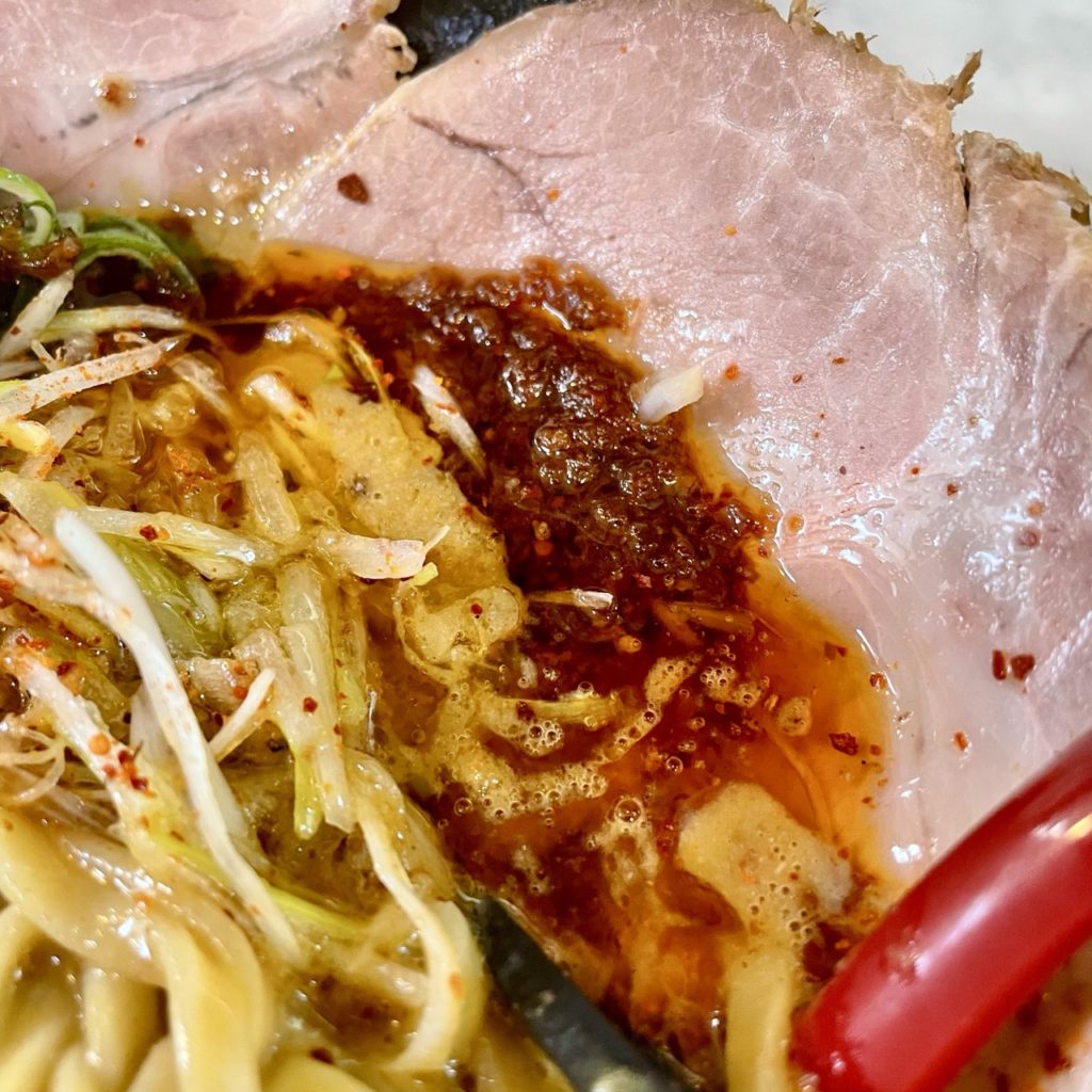 赤の方は真っ赤な一味ですが、見た目ほどの辛さはなく、むしろスープの旨みを引き上げてる!