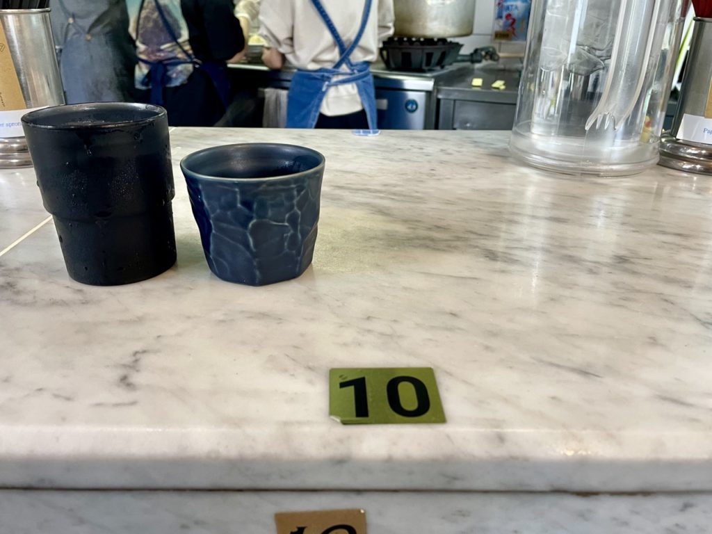 お水と一緒に温かいお茶が配膳されています。