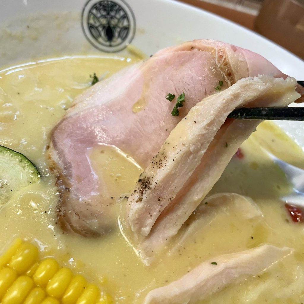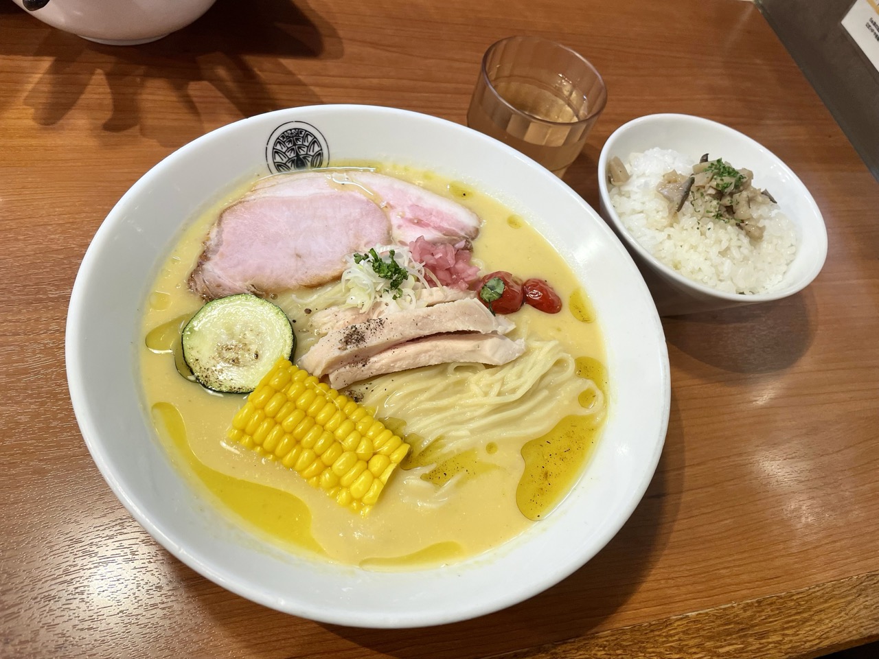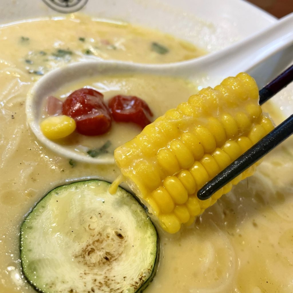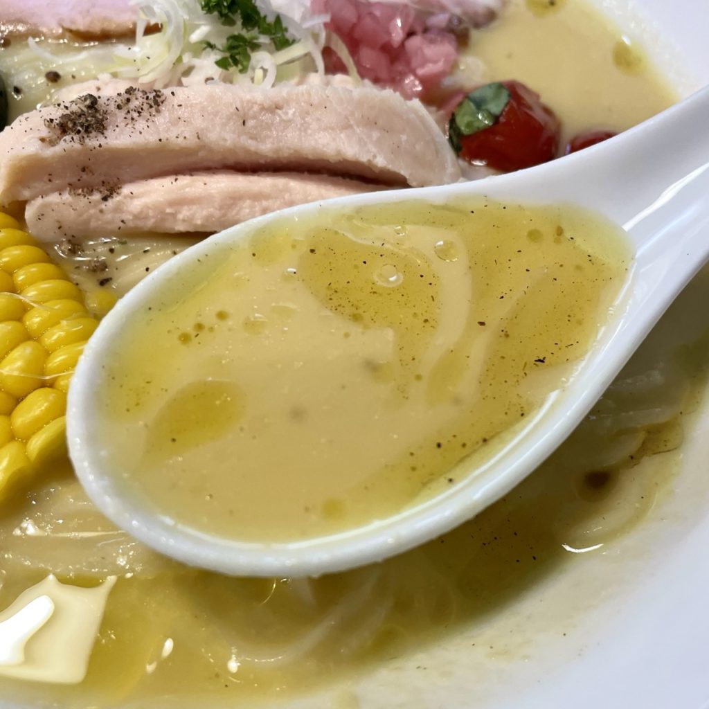 コーンの自然な甘さが冷たい地鶏スープと合わさって、フルーティーでめちゃくちゃ美味しい!