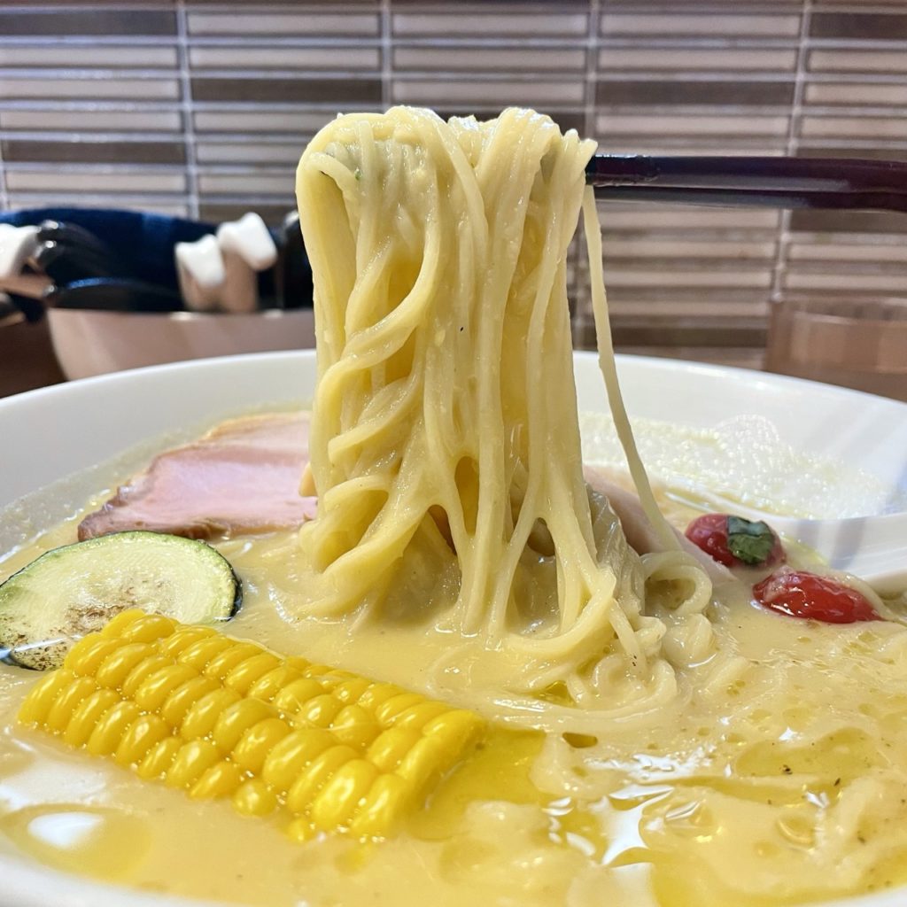 ストレートの中細麺は、京小麦プレミアムを中心にタピオカ澱粉などをブレンドされているそう。