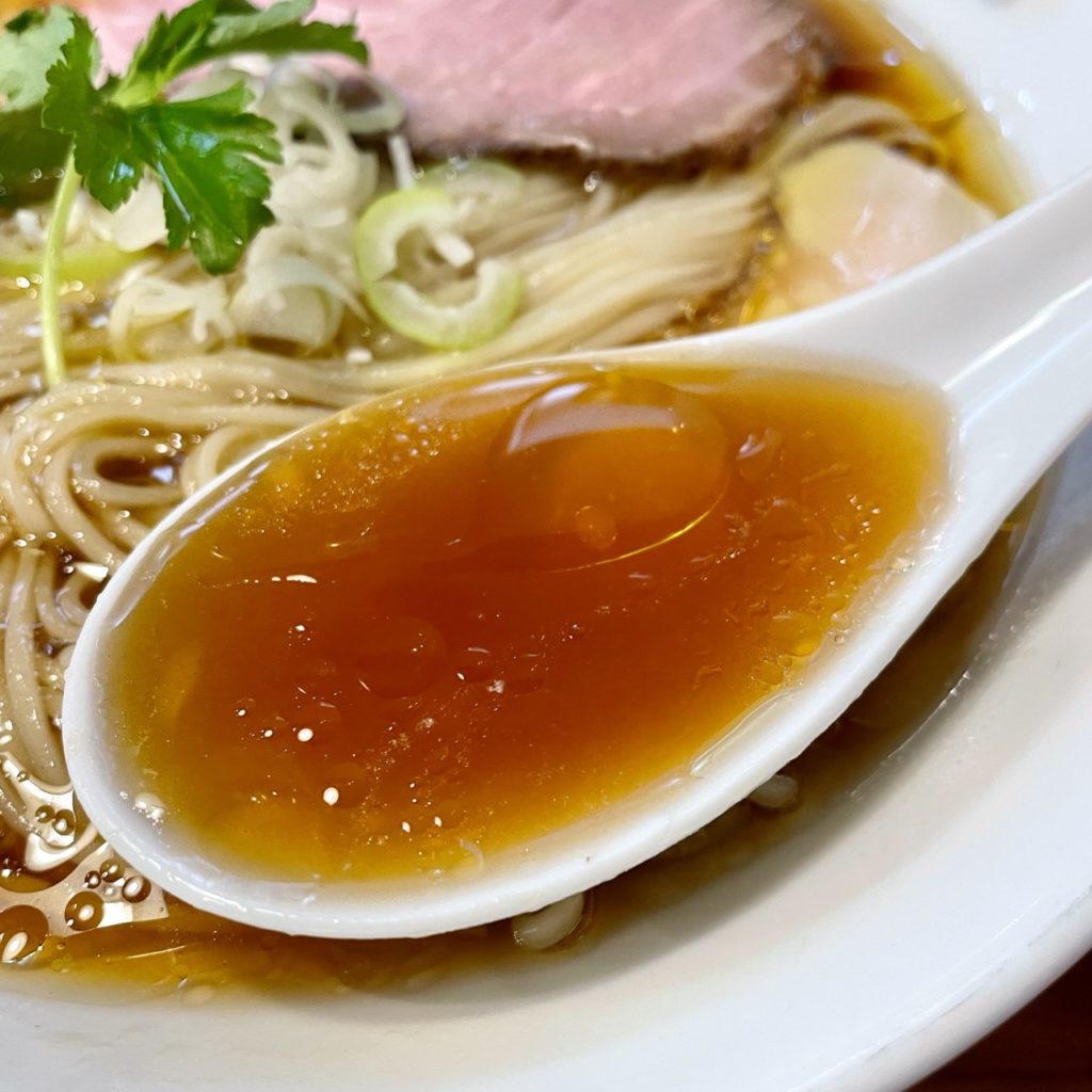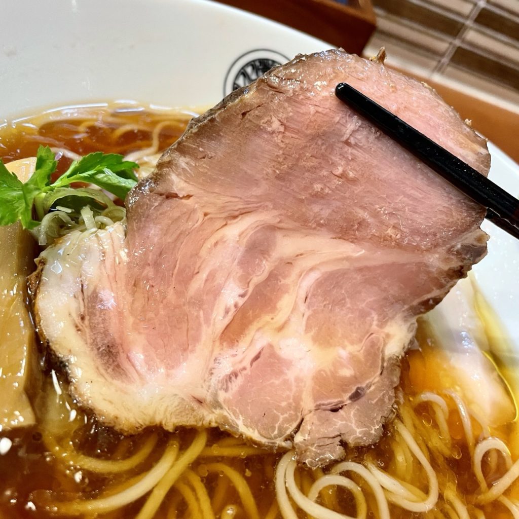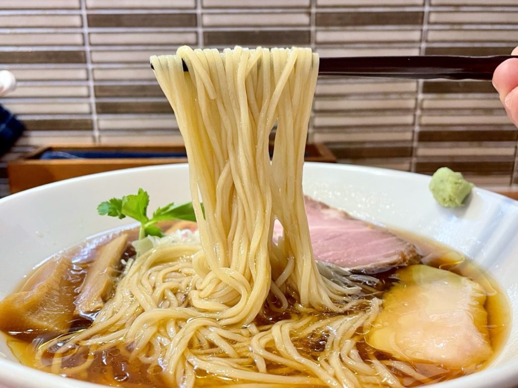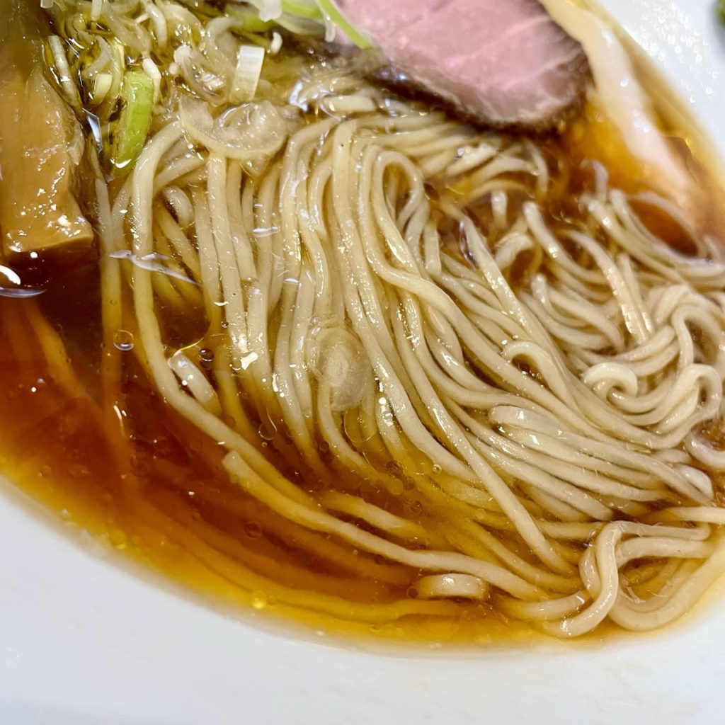 鶏の旨味に振った印象のふぢとらさんのスープに対し、こちらのスープは醤油の香りが素晴らしい。