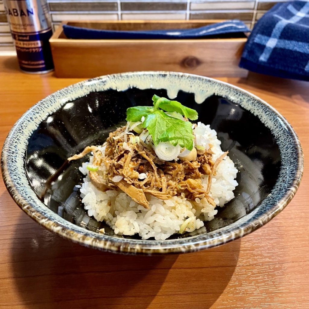 地鶏煮込み丼はほぐし肉がたっぷり!