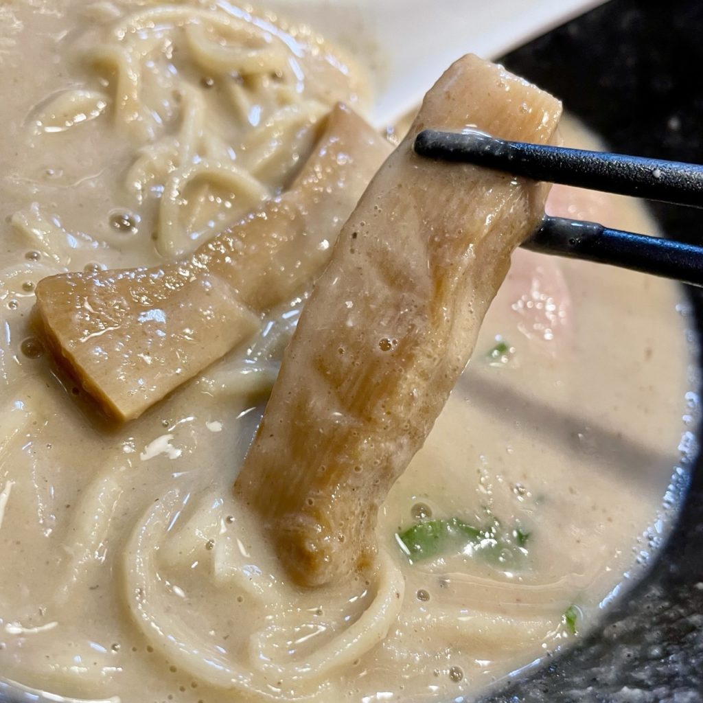 平打ち麺を合わせた鶏白湯もよく見かけますが、麺に絡んだスープの余韻を楽しむ平打ち麺に対し、この麺は「スープが絡んだ麺の味を楽しむ」ってな印象を受けましたね!