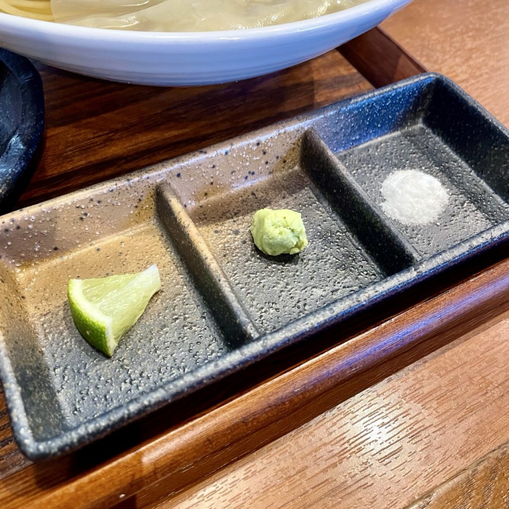 薬味が酢橘わさび雪塩