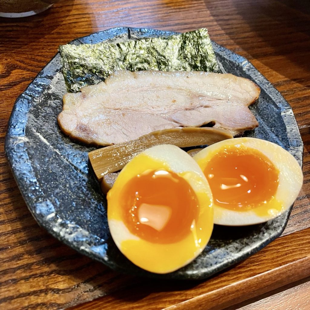 別皿に盛られたトッピングはチャーシューメンマ味玉海苔