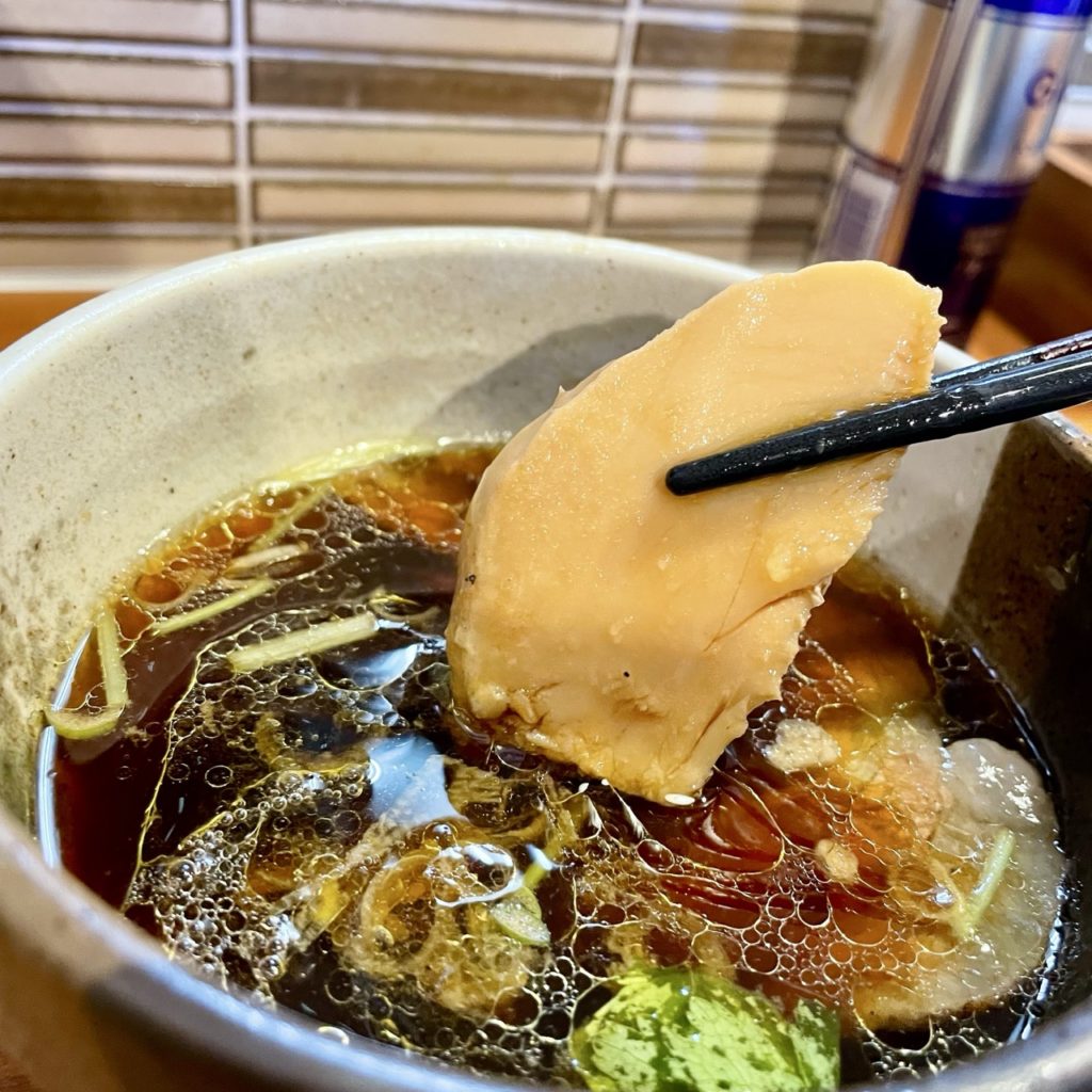 つけ汁に浸しても麺は昆布水を纏ったまま、チュルリと吸えば鶏・醤油・昆布の旨味を一気に味わえて幸せです。