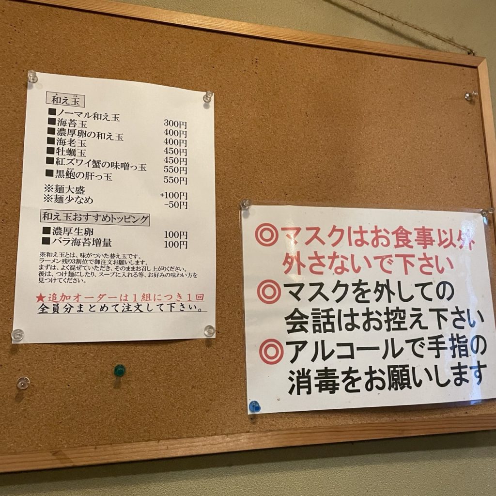 ただし和え玉等の追加オーダーは1組につき1回・全員分まとめて注文になるのでご注意ください。