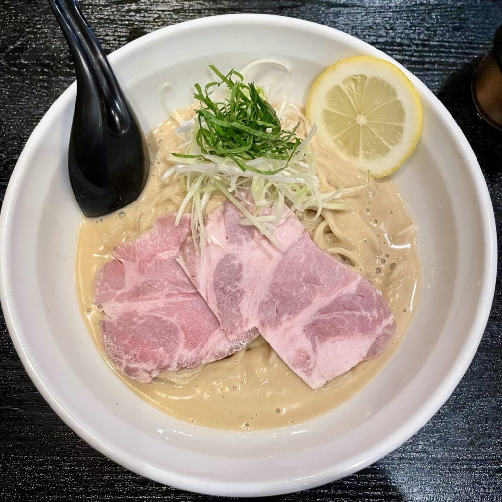 具材はチャーシュー・白髪ネギ・大葉・レモン。