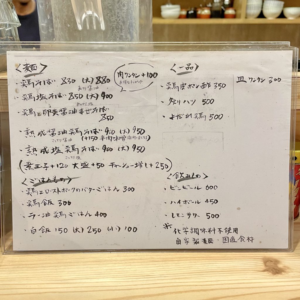 多くの店が21時に閉まるこの界隈、無化調・清湯系で21時以降も開いている貴重なお店です。