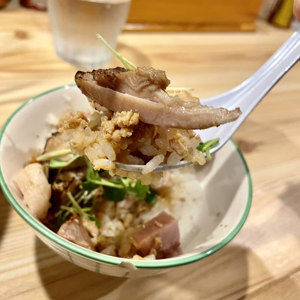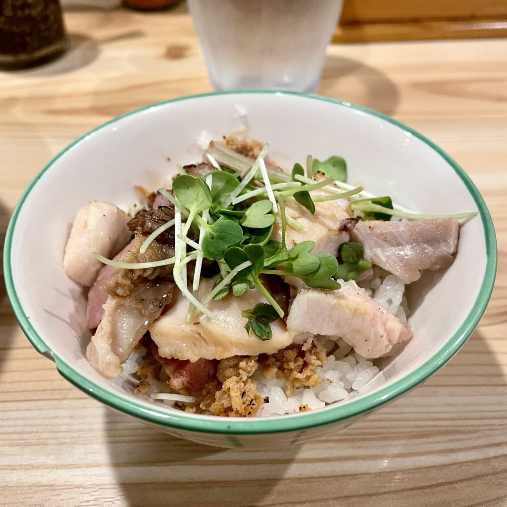鶏とローストポークのバターごはんは鶏谷さんといえば、の名物サイドメニュー。
