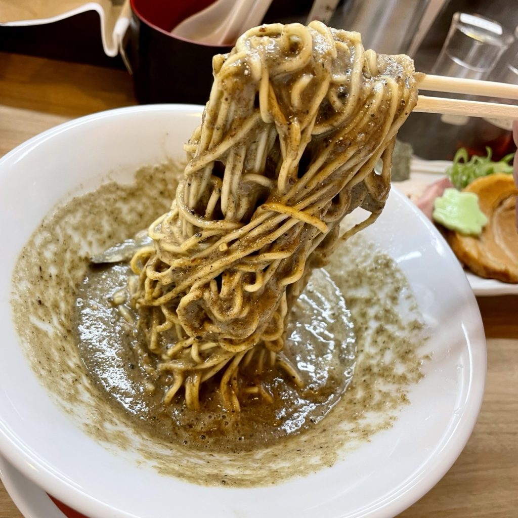 麺をごそっと持ち上げると、ほぼほぼ水位がなくなるほどのスープの粘度