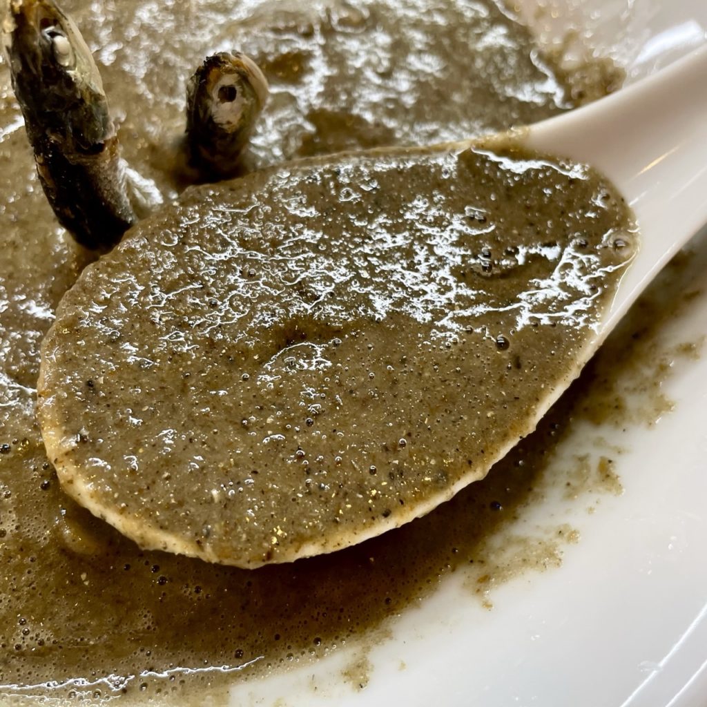 最強濃度のほぼ固形のスープは、煮干しをバリバリ食べるよりもダイレクトに、煮干しの旨みエグみ脳の記憶領域に刻みつけられる感じ!