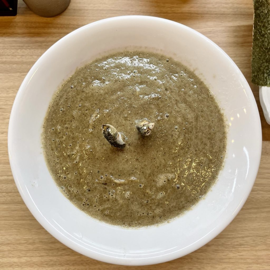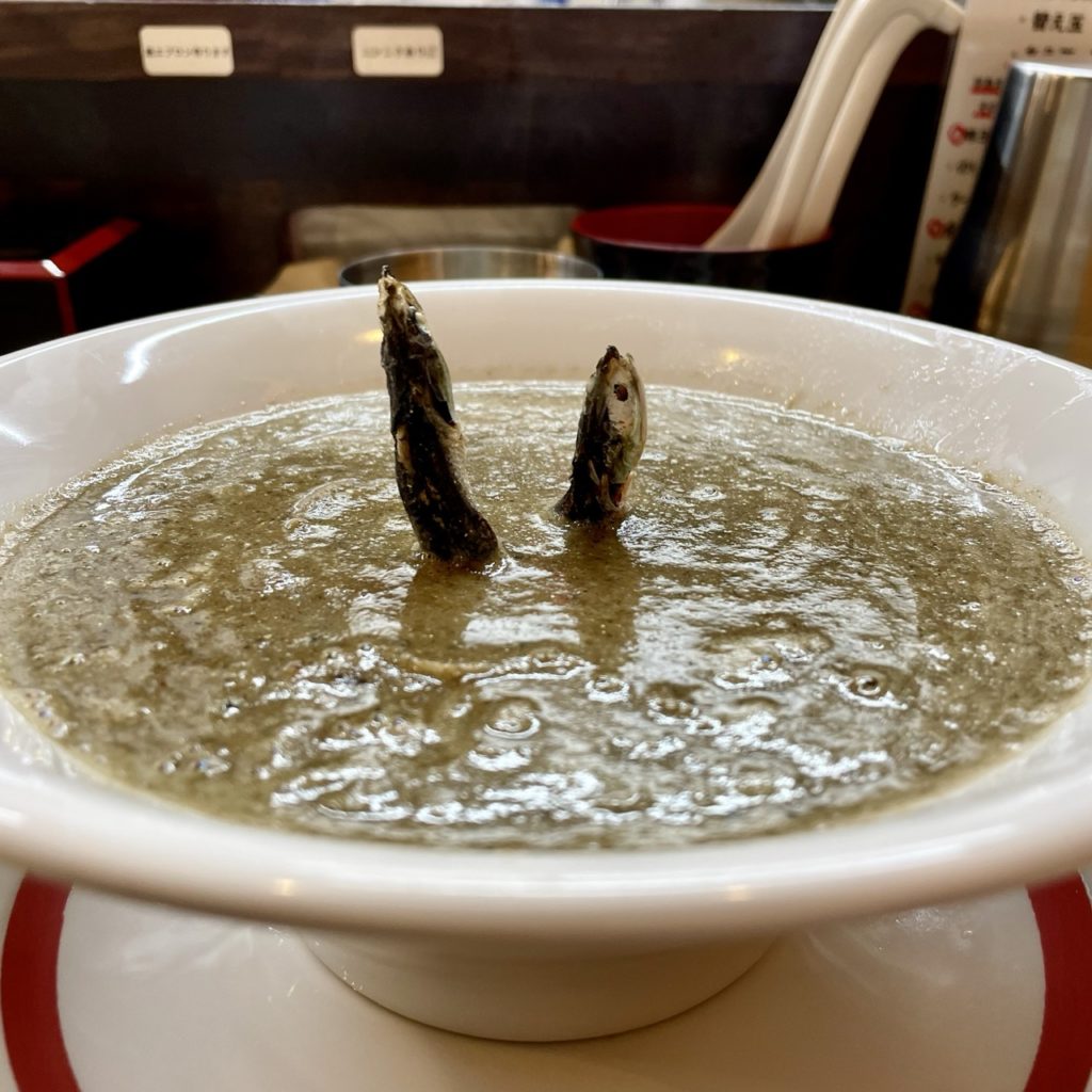 この広い丼の海にぶっ刺さった儚げな煮干しの対比、めちゃくちゃシュールな画です笑