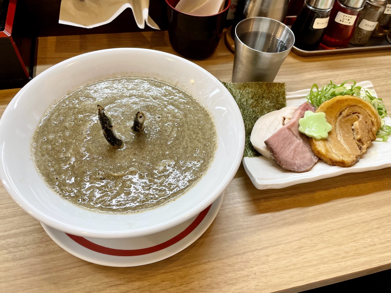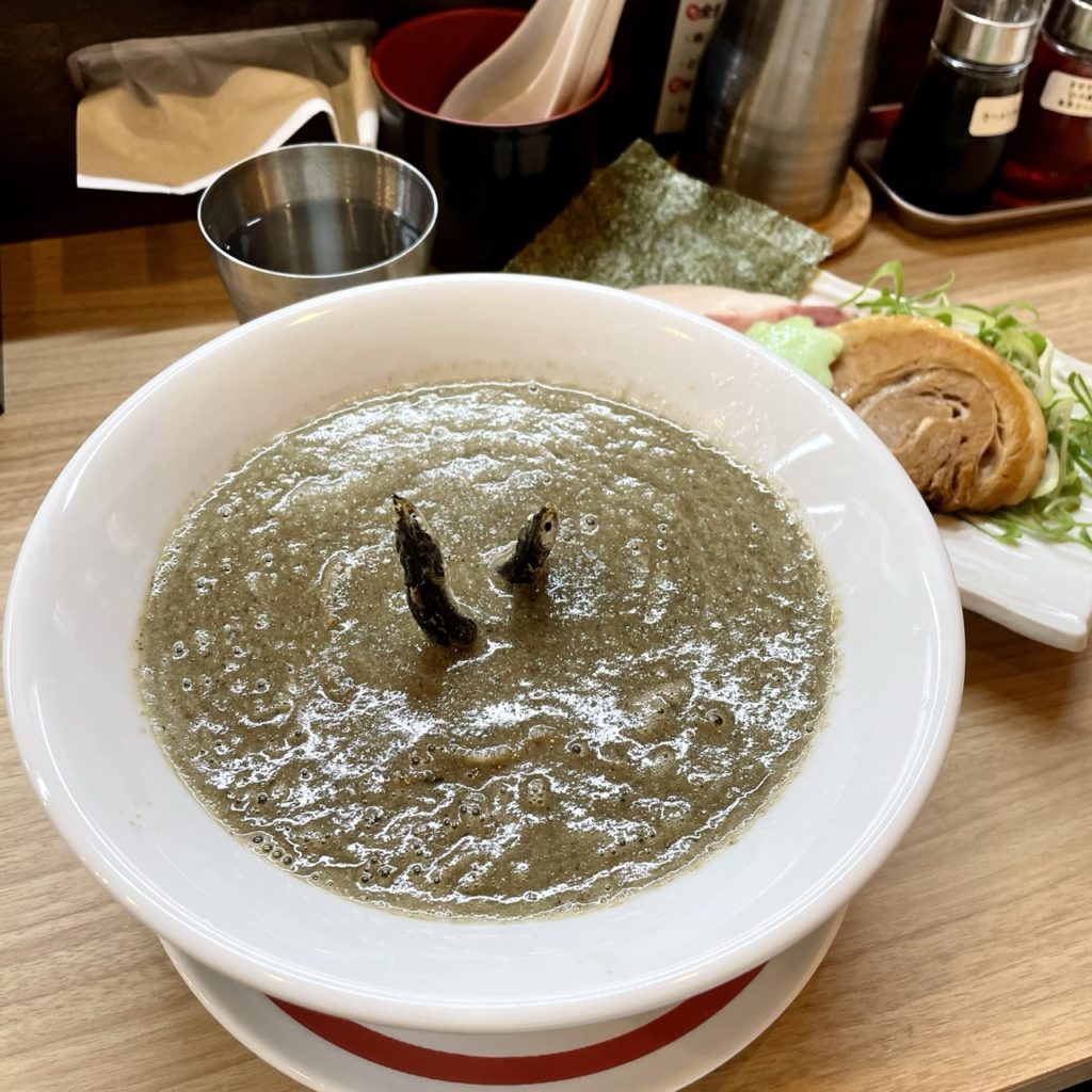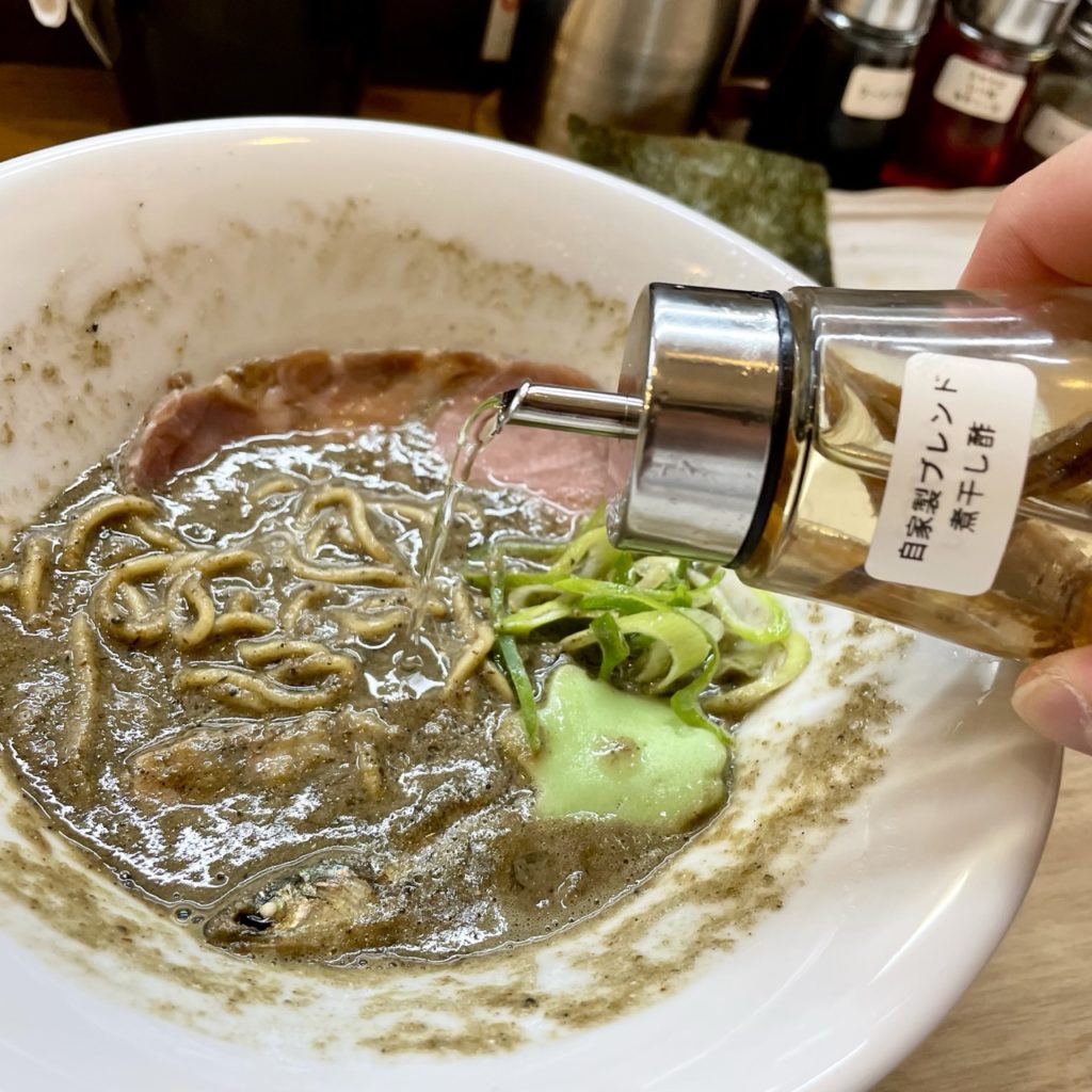 ちなみにこの鬼煮干しの上に裏煮干しという、煮干しレベルがもう一段階上の最高濃度を誇るメニューもありますが、そちらには煮干しが3本刺さっているようです笑