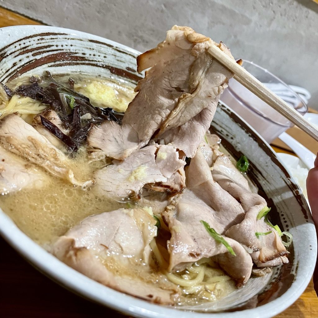 チャーシューでごはん食べたかったから、特製じゃなくてチャーシュー麺にしたけど数えたら8枚あって、どれも良いサイズでお値打ちだったね!