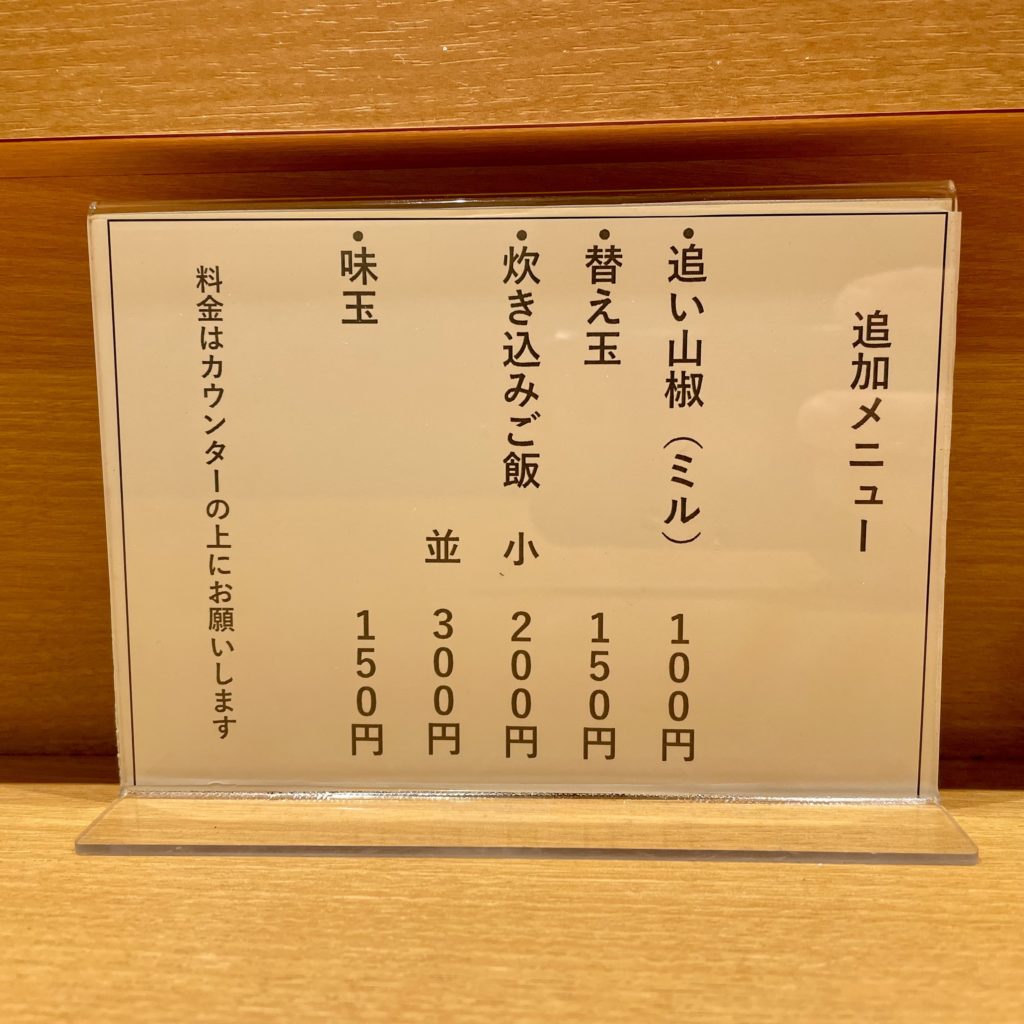 券売機にボタンがないので、直接店員さんに現金で支払います。土鍋肉ご飯食べようと思ってたんですけど、売り切れてたので今日は控えめに麺だけ。