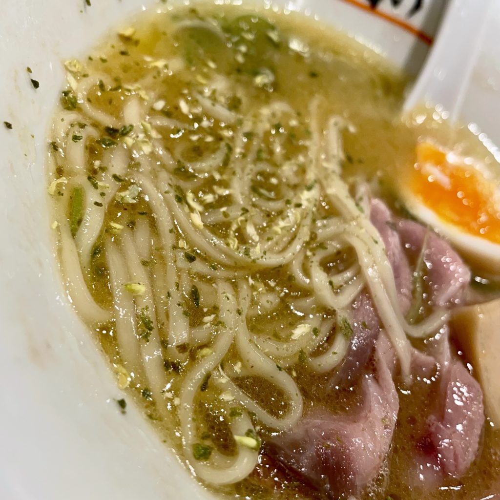 ストレート・やや平打ちの細麺は、製粉会社出身という経歴を持つ店主さんの自家製麺!
