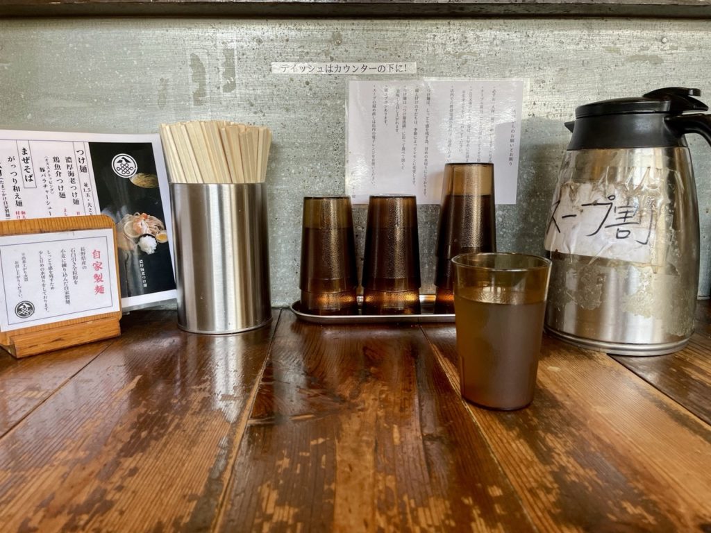 お水はカウンター上のタンクからセルフで。