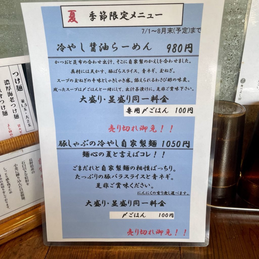 麺心よし田「豚しゃぶの冷やし自家製麺」