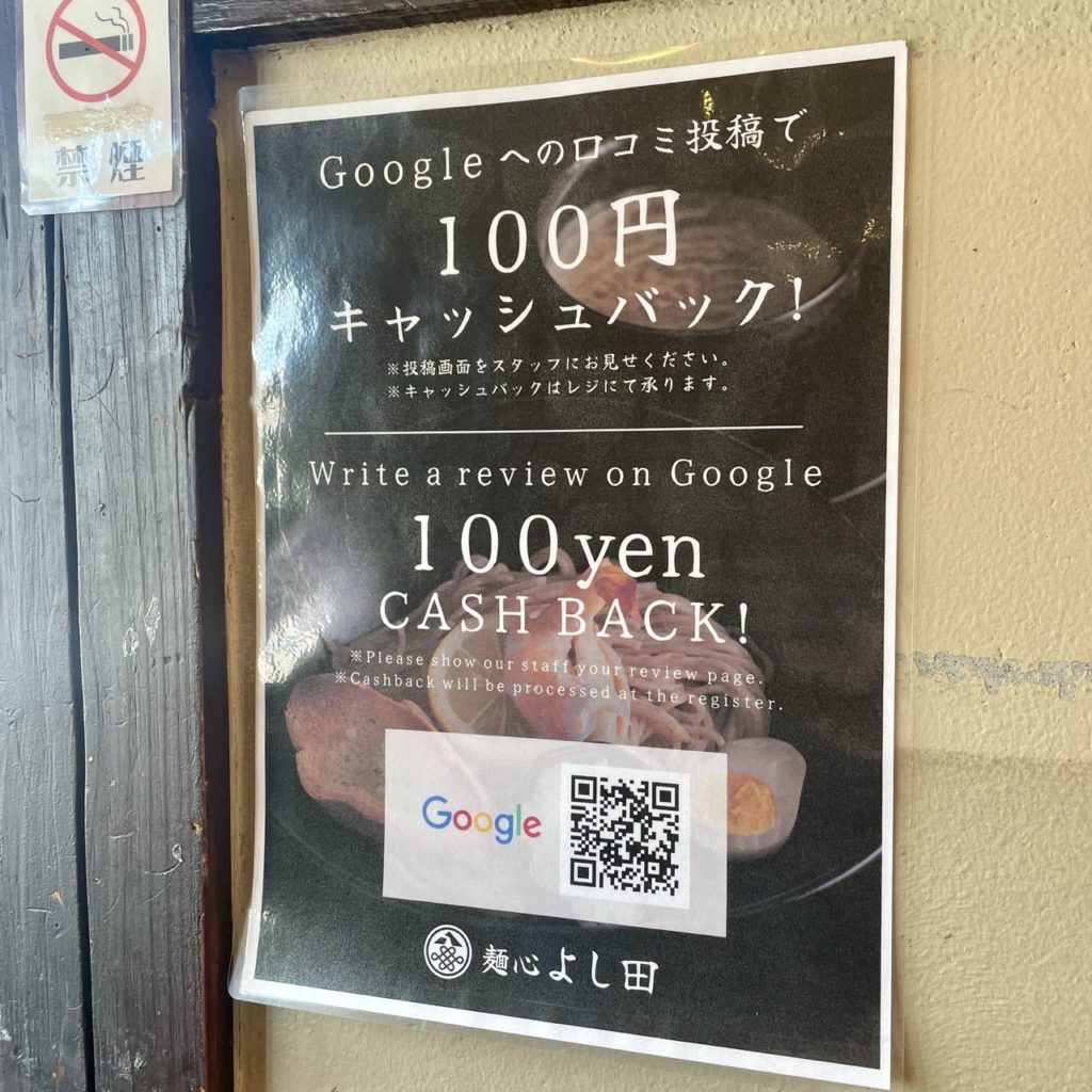へーGoogleへの口コミ投稿で100円引き!