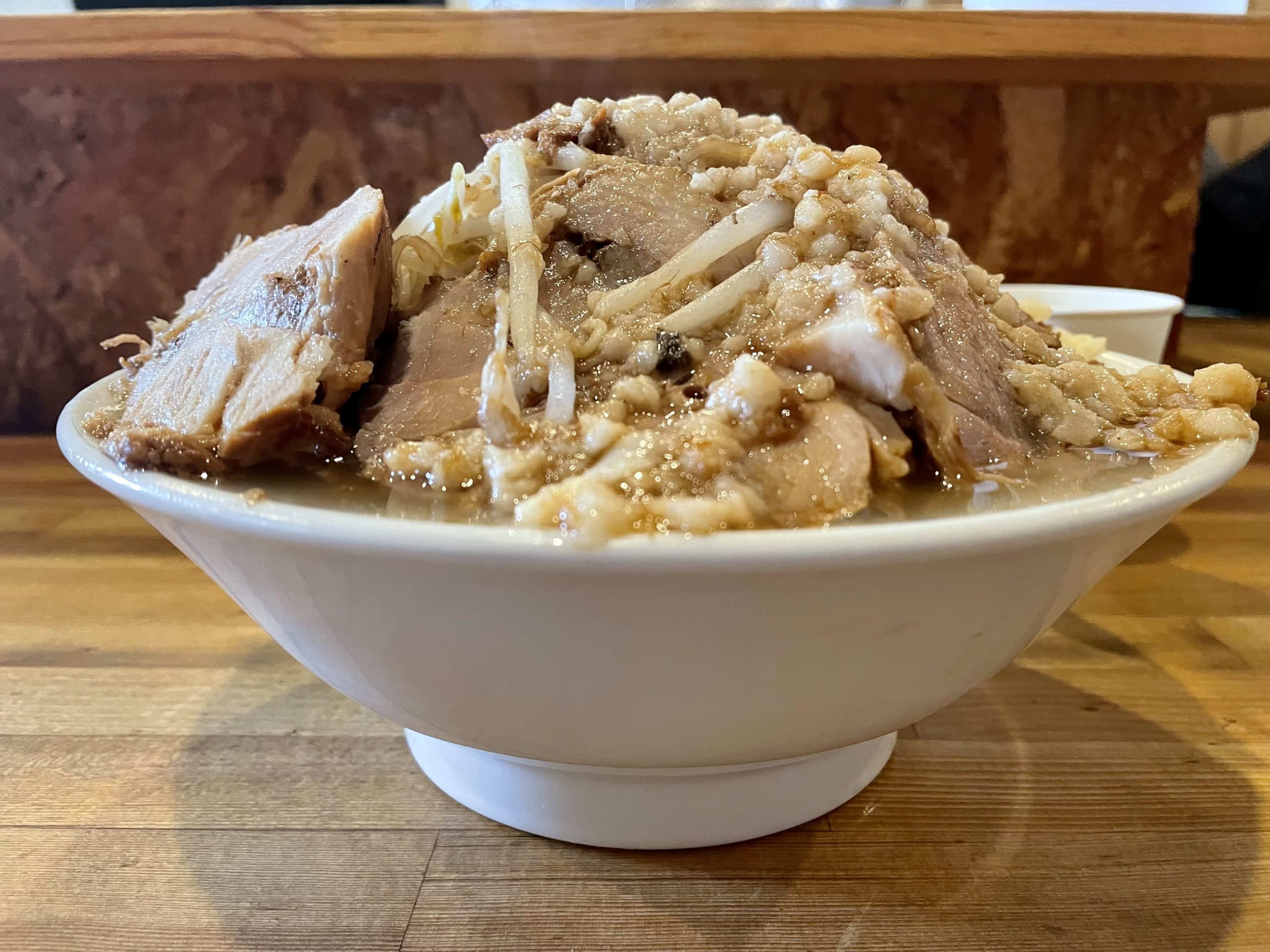マシマシにしたアブラが冠雪した冬山みたいになってますね笑
